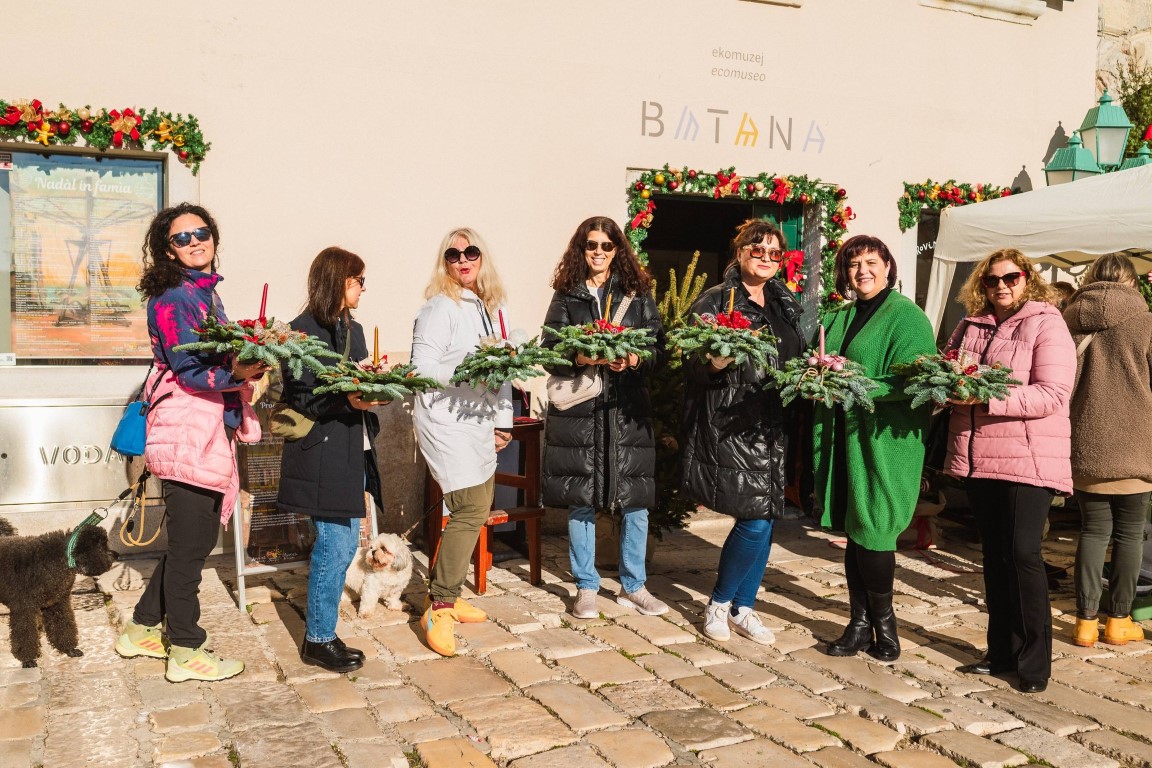 I più piccoli hanno partecipato con entusiasmo a numerosi laboratori della Batana, creando momenti indimenticabili con le istruttrici, i loro amici vecchi e nuovi e i genitori. I tavoli davanti al museo si sono colorati di fantasia e creatività; il tempo è volato tra risate, consigli e insegnamenti per realizzare decorazioni natalizie che tradizionalmente adornano le case di Rovigno. Numerosi meravigliosi centrotavola e colorate calze della Befana sono stati realizzati dai partecipanti con l’aiuto di Roberta Silvi Malusà, mentre Virna Dalino Polo li ha guidati nell’arte di combinare candele, rami di abete, nastri, palline e decorazioni per ikebana, che le partecipanti portavano a casa con grande soddisfazione e orgoglio.