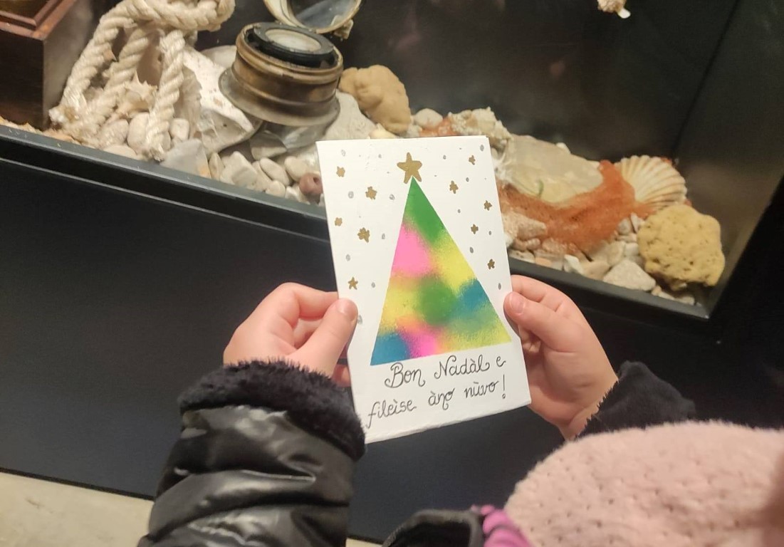 Silvia Curto podučila ih je izradi božićnih drvca od filca, a Romina Giuricin i Alessia Petrović su im otkrile originalan način za izradu velikih kuglica od tkanine. Tanja Ranić Rovis djecu i odrasle odvela je u svijet likovne umjetnosti i kaligrafije pa je Batanin kreativni stol u dva navrata postao mala tvornica čestitki. Napravljene su korištenjem akrilnih boja koje su sudionici nanosili jednostavnom i efektnom tehnikom da bi potom preko nježno obojenih borića ispisivali blagdanske želje na rovinjskom dijalektu savladavajući vještinu kaligrafije. Neke je ponijela inspiracija pa su prelijepe čestitke ispisali na licu mjesta pohranjujući u njih dio vedre, opuštene atmosfere koja je omekšala svako srce.