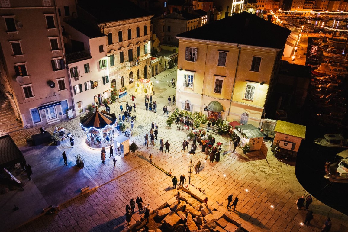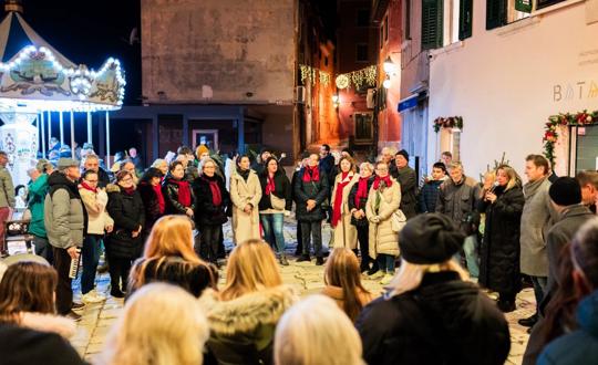 Questo ingresso nel mondo dei ricordi è stato seguito da uno dei momenti più emozionanti e solenni del programma, che, a Natale stesso, ha unito voci e cuori cantando “El xe nato el 25 (Verbumcaro)”, vero elemento caratteristico della musica natalizia di Rovigno. Nonostante il freddo, i rovignesi hanno cantato le parole conosciute, mentre i visitatori si sono uniti spontaneamente grazie al libretto preparato dal musicologo Alessio Giuricin, per seguire parole e melodia e scoprire una parte importante del ricco patrimonio musicale rovignese.